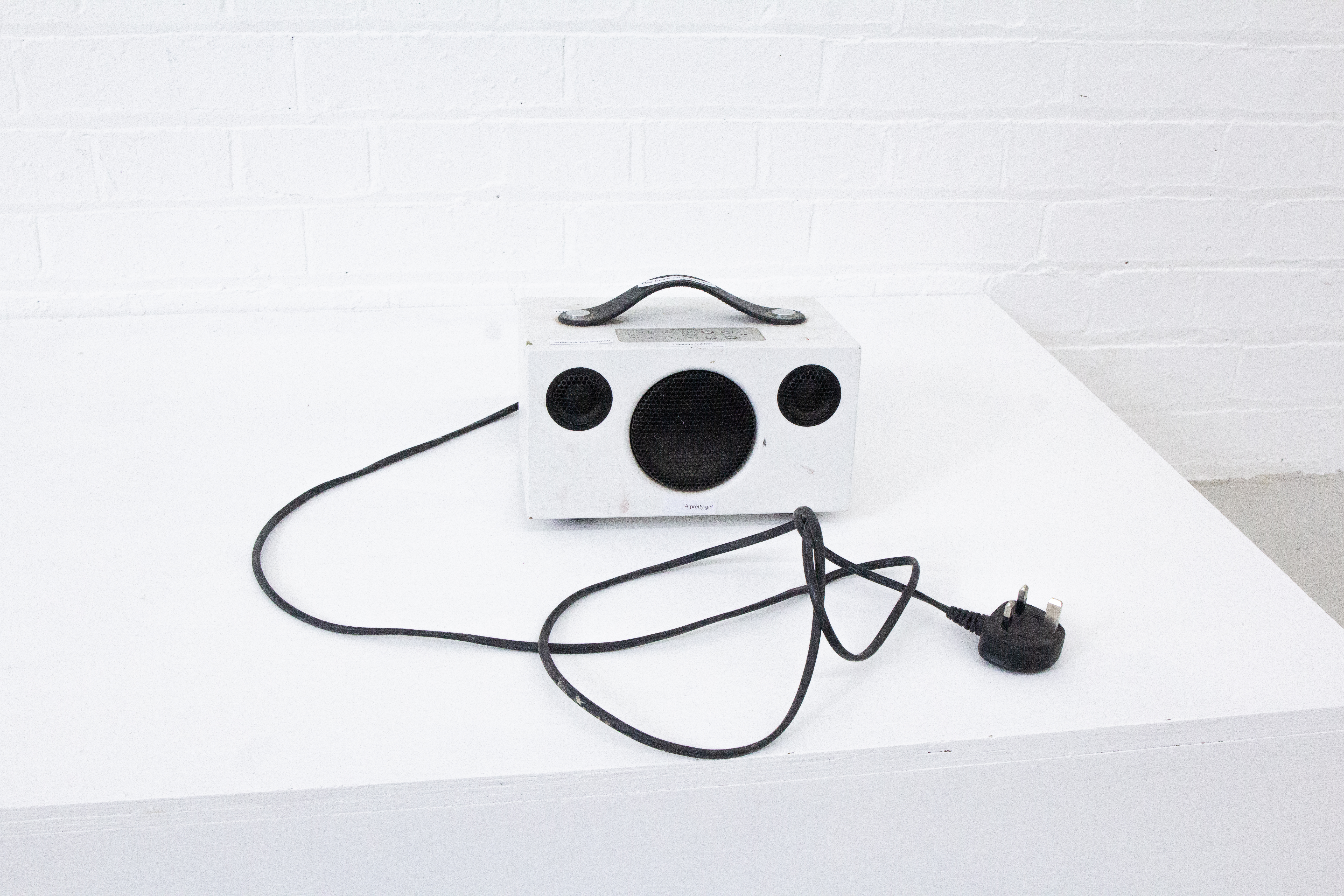 Untitled (The keys on the piano). Speaker and text on artists plinth.